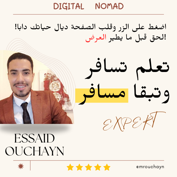 شرِك "تعلم تسافر و تبقا مسافر" غادي يكون الخطوة الأولى ليك باش تبدل حياتك وتعيش الحرية الحقيقية. ما تضيعش الفرصة وخلّيني نكون دليلك فهذ الرحلة.